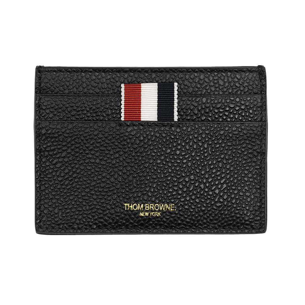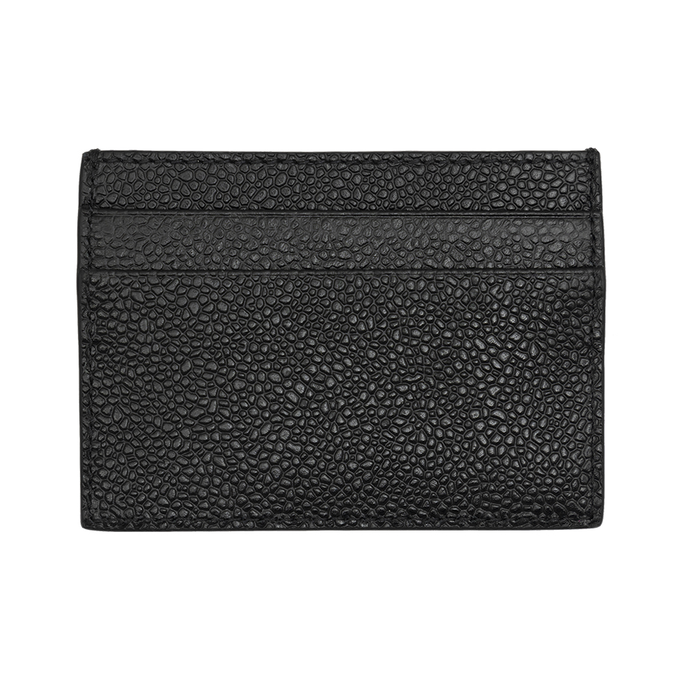 Successfully nominated to and winner of a series of Designer Of The Year s, Thom Browne began his journey in ready-to-wear in 2003. Perpetuating a timeless craftsmanship of handmade tailoring, his innovative garments are recognised by many museums around the world, just as his collections are equally esteemed in all corners of the globe. Crafted from black grained leather, this classic cardholder trendsets any attire. Its unique texture subtly glows with a pebble effect. This exquisite accessory features four card slots, a note compartment lined with the brand"s striped design and a metallic front logo stamp below the iconic striped tab.