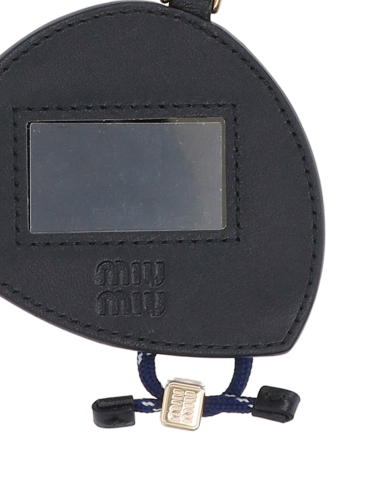 Miu Miu Baseball Baseball Cap keychain trick in burgundy red calf leather, removable strap, gold metal ring key ring, engraved logo detail, blue lace charm, back mirror, embossed logo on the back.