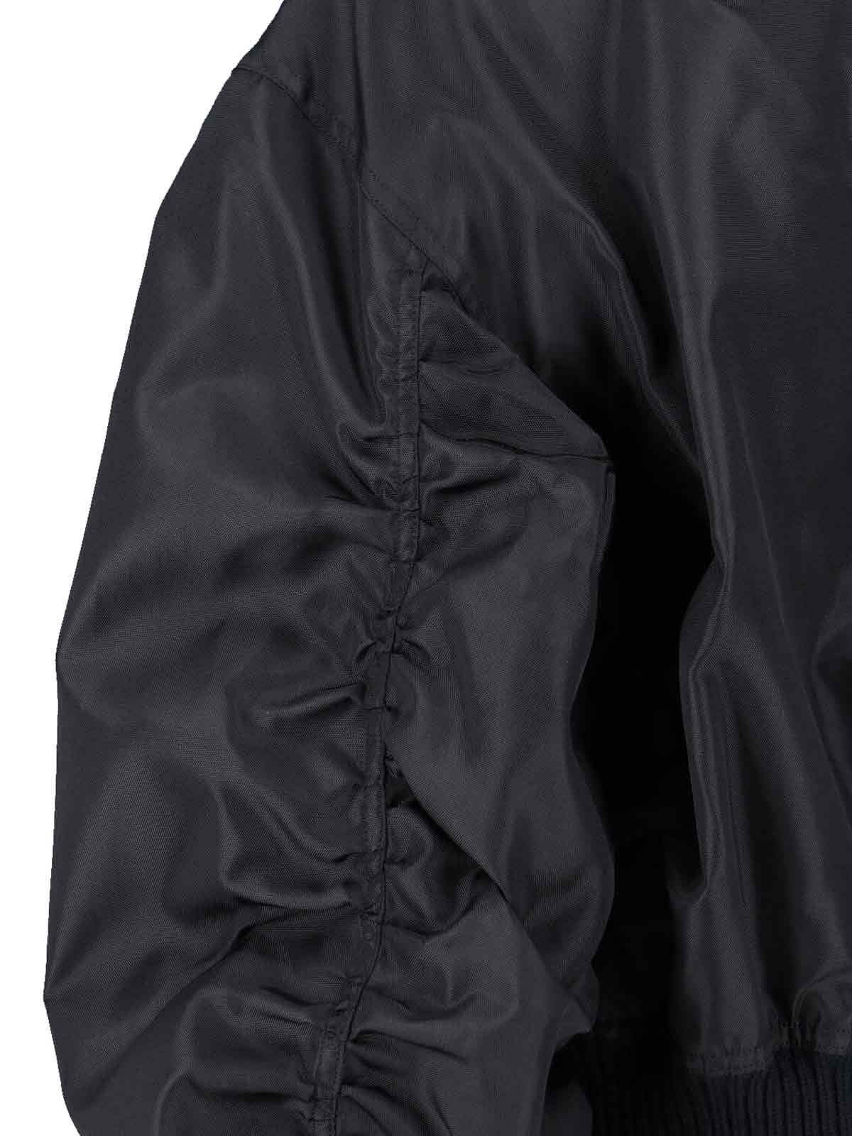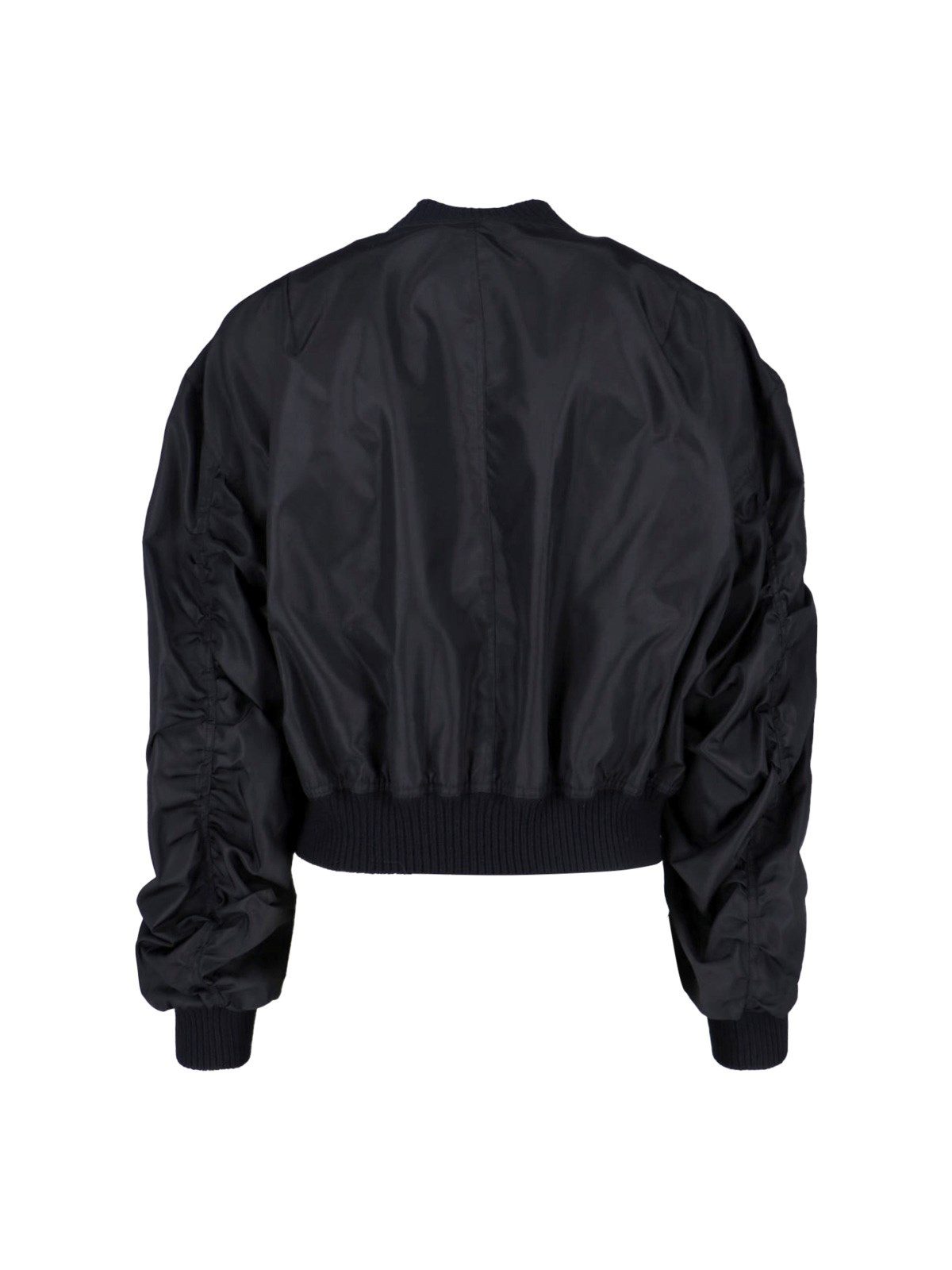 Rick Owens "Secchia Flight" black fabric bomber jacket with crew neck, zip closure, long sleeves, crinkled details on the sleeve, two front pockets, ribbed trims, straight hem.