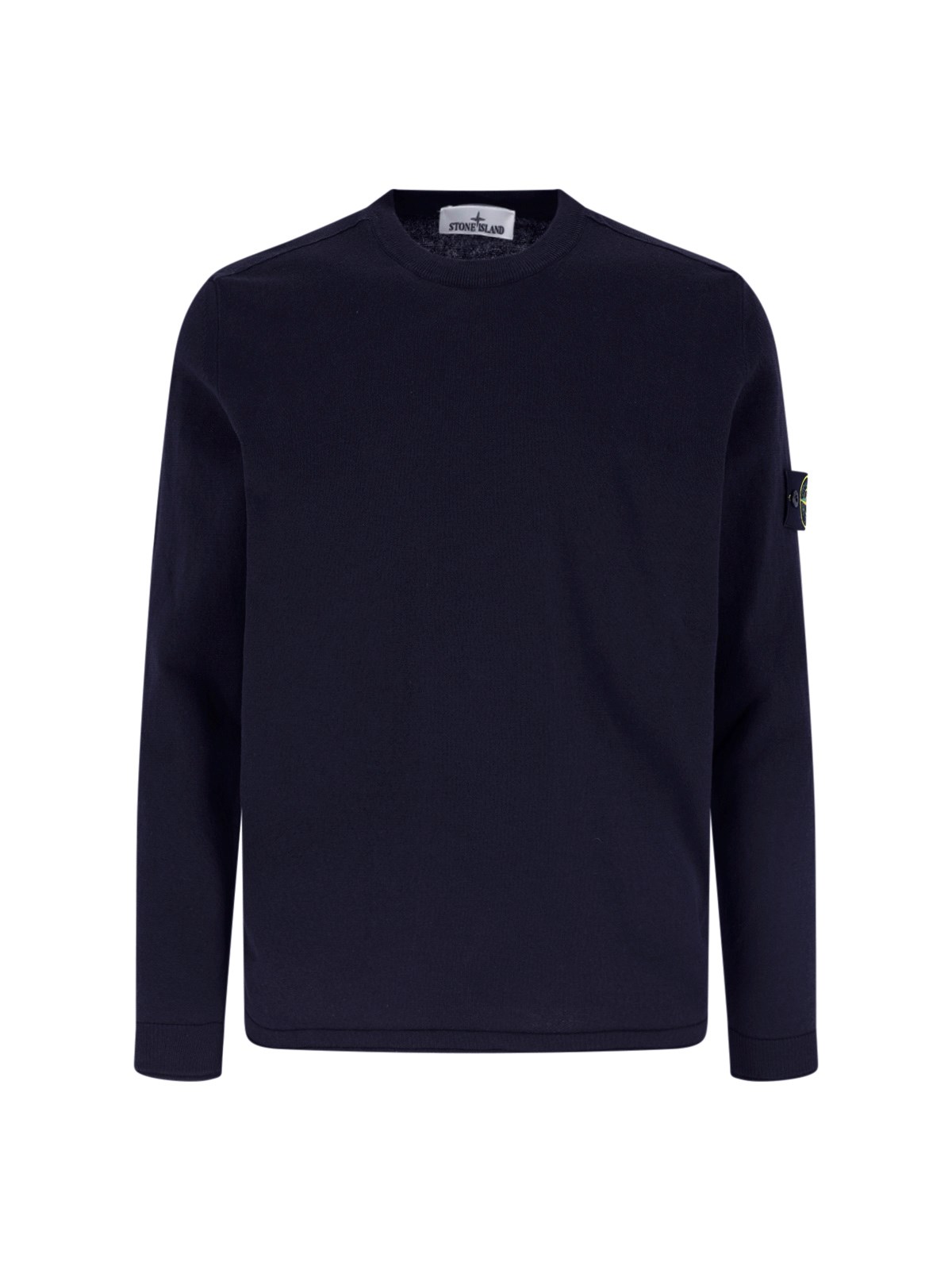 Cotton sweater 'Compass' Stone Island, blue, dark shade, crew neck, long sleeves, side 'Compass' logo patch, ribbed finishes.