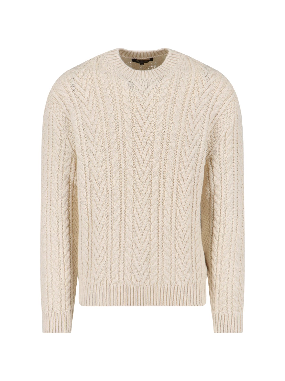 Loro Piana cashmere sweater, white, knitted, crew neck, long sleeves, ribbed finishes, straight hem.