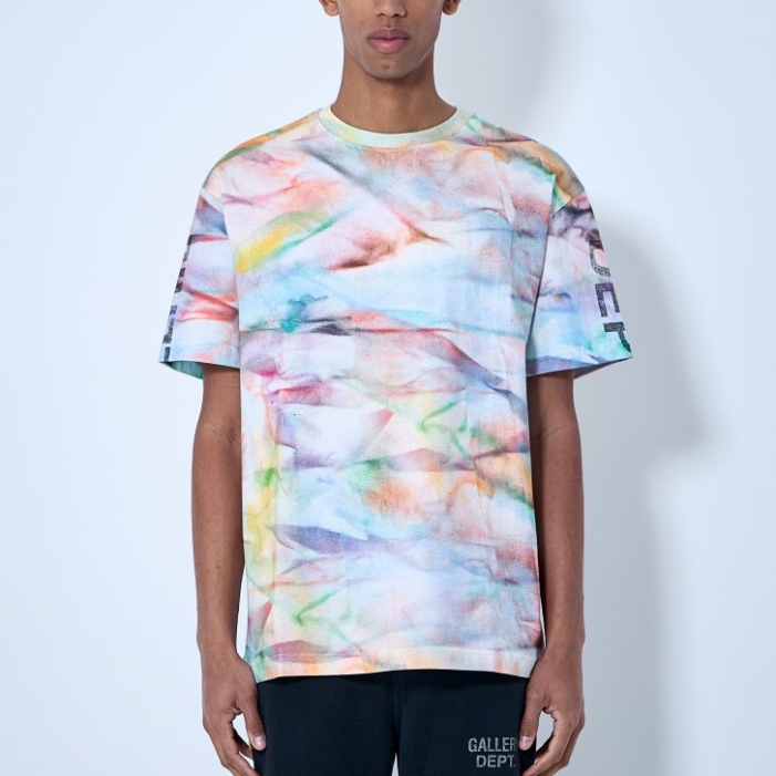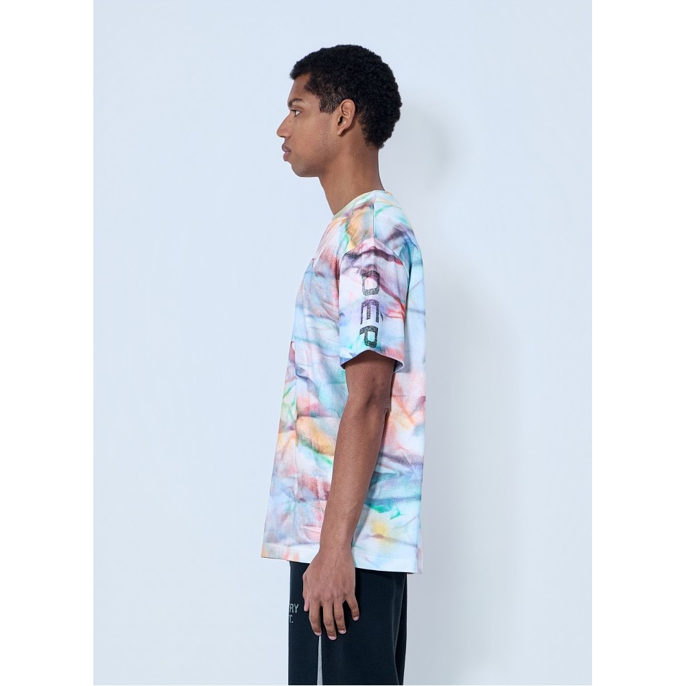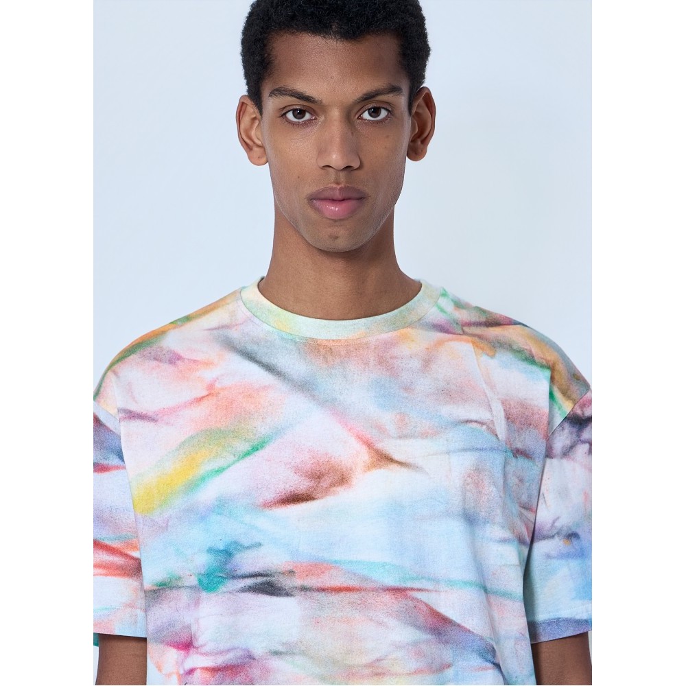 Crewneck T-shirt in abstract print cotton jersey.