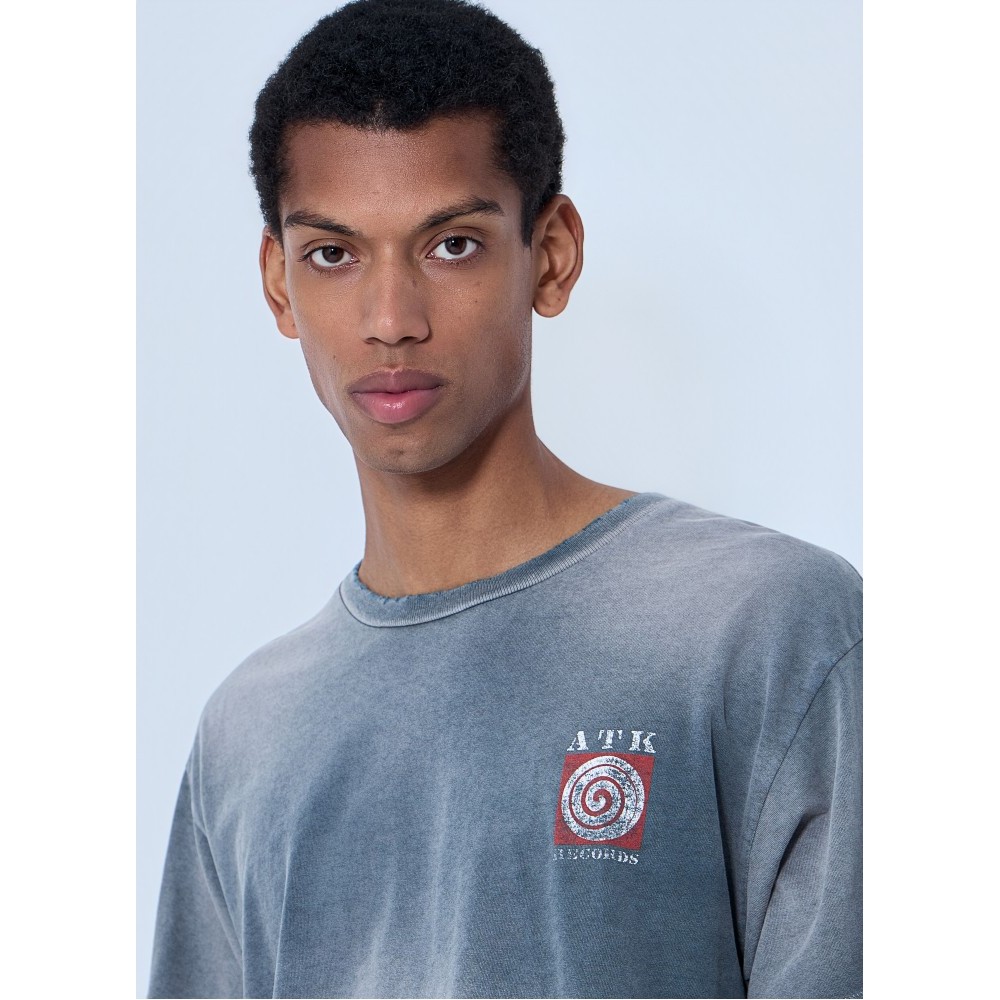 Crewneck T-shirt in distressed cotton jersey.